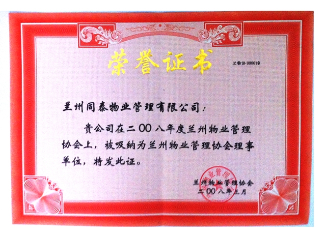 我司被兰州物业管理协会吸纳为兰州物业管理协会理事单位。