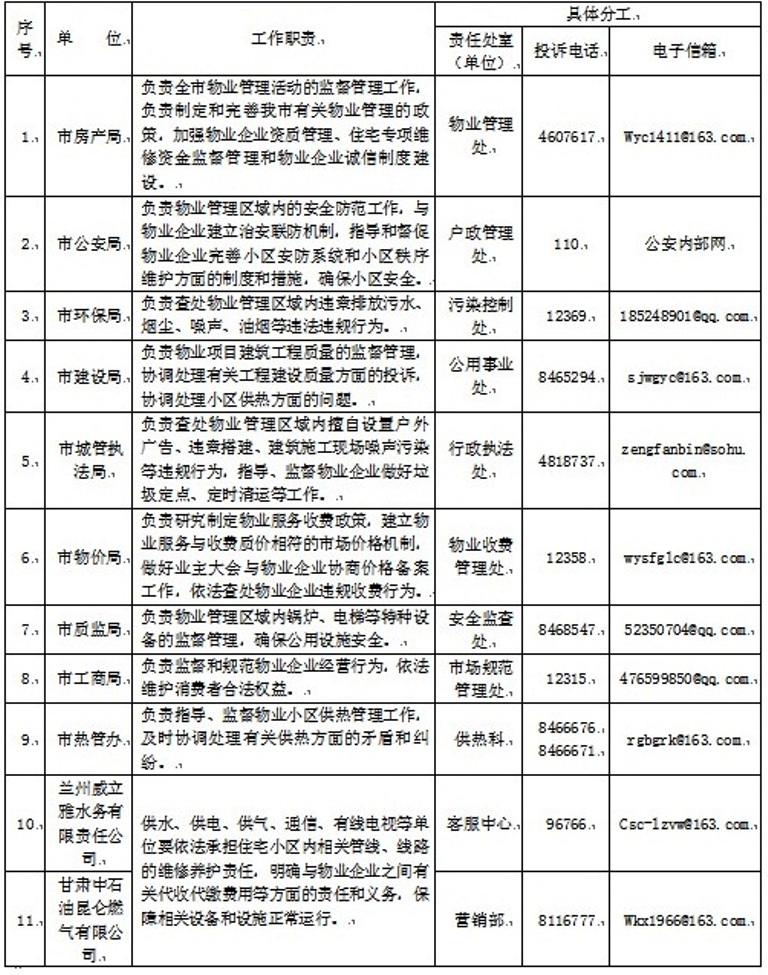 兰州市物业管理相关责任单位及投诉电话公示